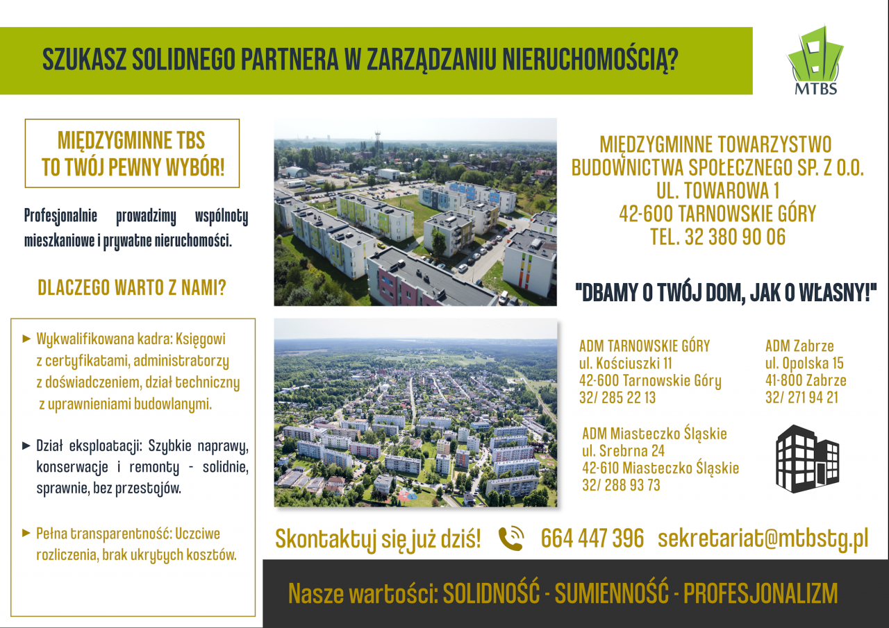 Międzygminne Towarzystwo Budownictwa Społecznego (MTBS) jest spółką z ograniczoną odpowiedzialnością, której założycielem jest Gmina Tarnowskie Góry, powstała na mocy Uchwały Rady Miejskiej w Tarnowskich Górach.