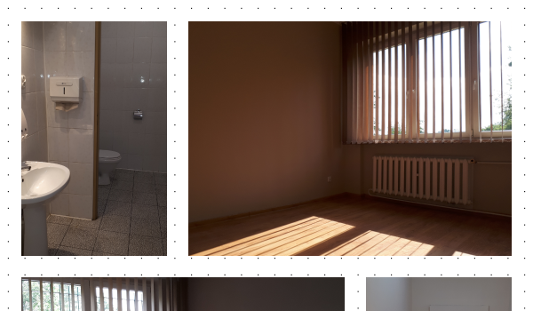 Lokal składa się z 5 pomieszczeń biurowych, pokoju socjalnego, wc, wiatrołapu. Nieruchomość znajduje się na wysokim parterze dwupiętrowego budynku biurowego, posiada odrębne wejście oraz okna PCV. Lokal jest po remoncie- ściany odświeżone, nowe panele podłogowe. Przy lokalu znajduje się parking. Budynek aktualnie poddawany jest termomodernizacji.
