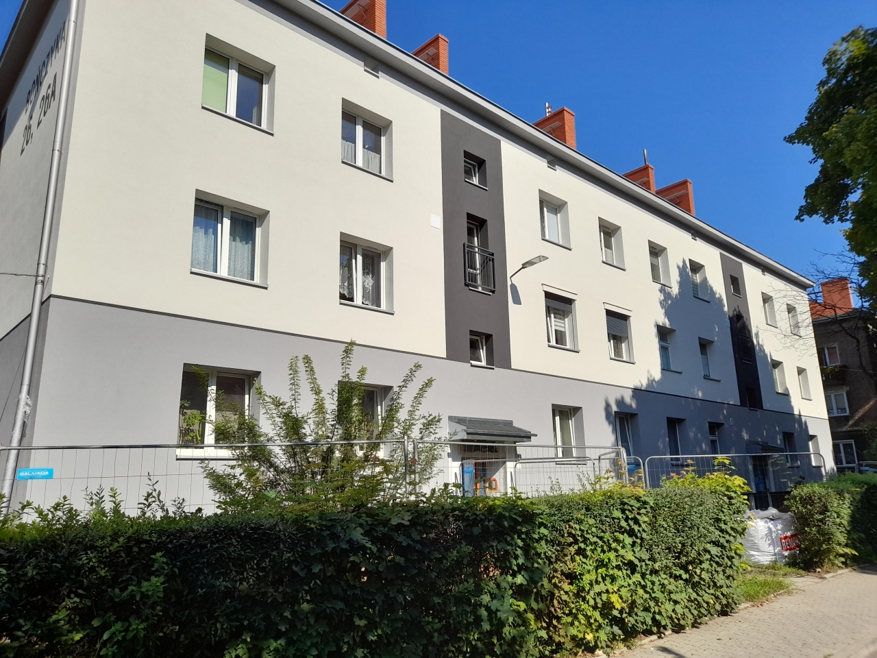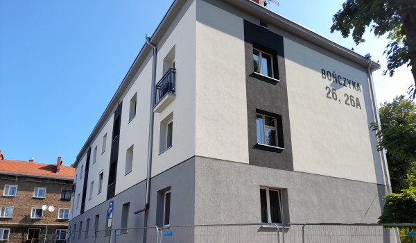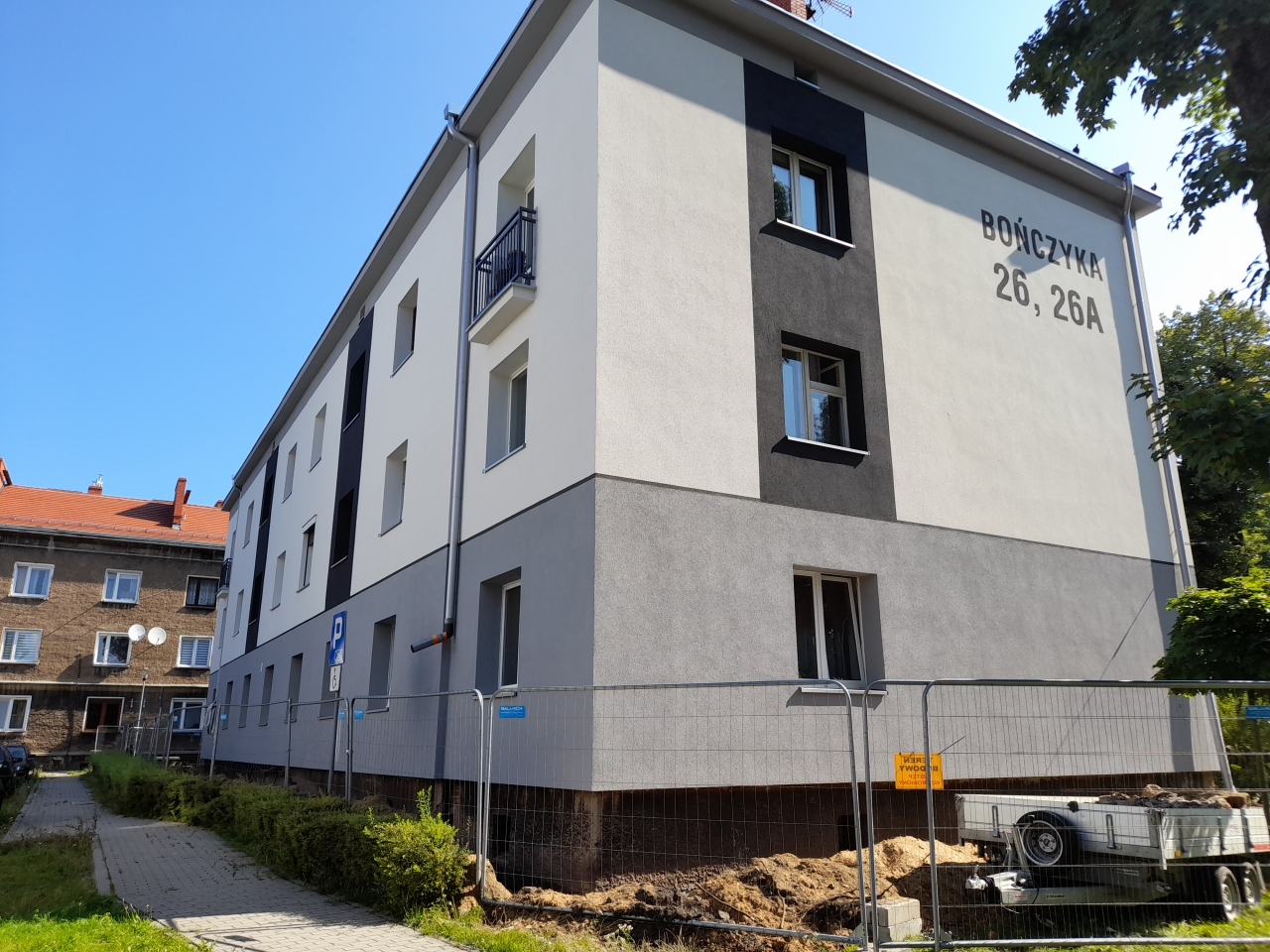 Międzygminne TBS Sp. z o.o. jako zarządca budynku przy ul. Bończyka 26-26a informuje, że zakończono większość prac związanych z ociepleniem elewacji oraz rozebrano rusztowania.