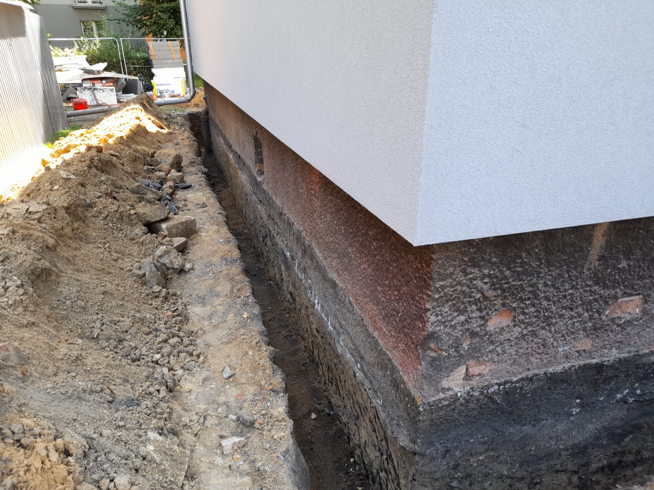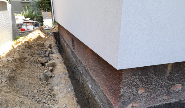 Aktualnie trwają prace związane z izolacją fundamentów.