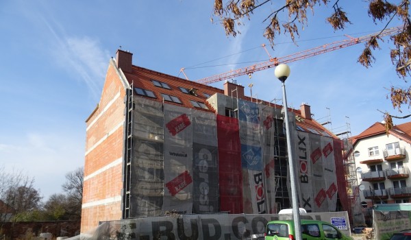 Międzygminne TBS Sp. z o.o. informuje, iż aktualnie trwają prace tynkarskie oraz instalacyjne, wykonywany jest montaż okładzin ceramicznych oraz ocieplanie budynku.
