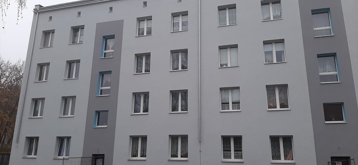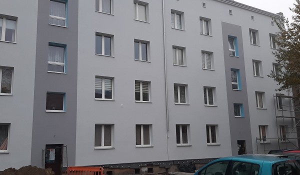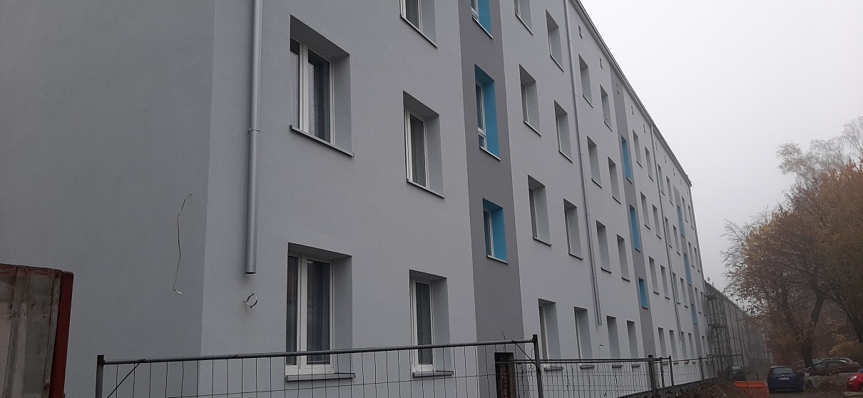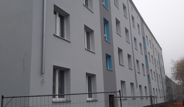 Międzygminne TBS Sp. z o.o. informuje, iż wykonano docieplenie ścian (nadziemia) zewnętrznych, tj. południowej i wschodniej, aktualnie trwa docieplenie ściany północnej i zachodniej.