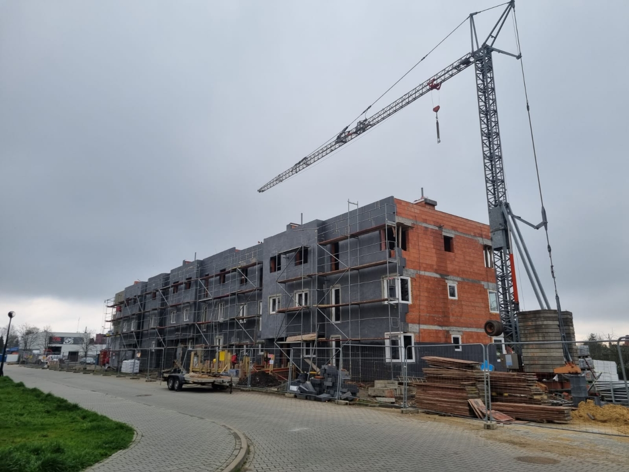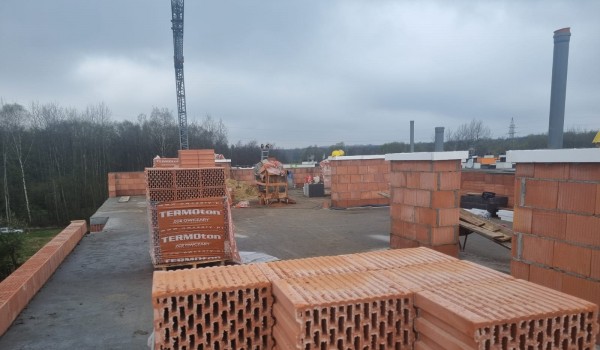 Została wykonana kotłownia, wykonywane są roboty zewnętrzne przy budynku oraz roboty wykończeniowe parkingu.