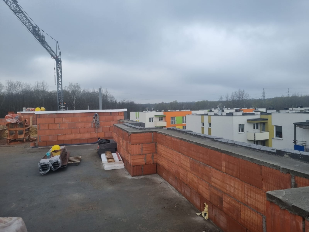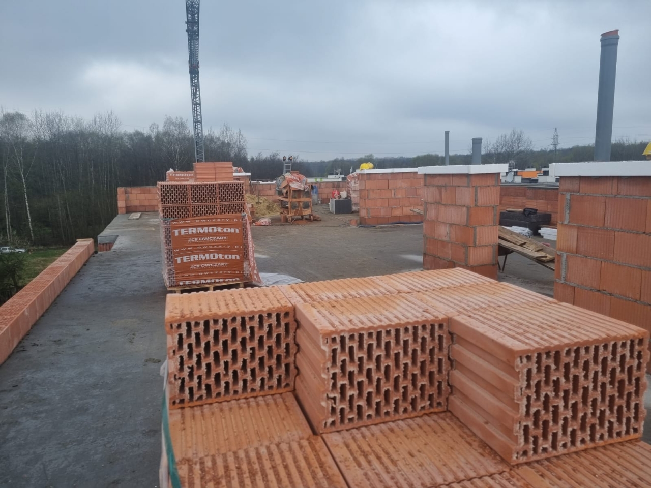 W trakcie wykonywania są tynki oraz wylewki oraz roboty przygotowawcze przy stropodachu.