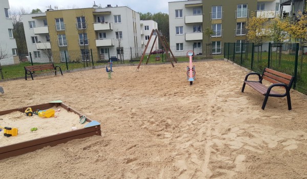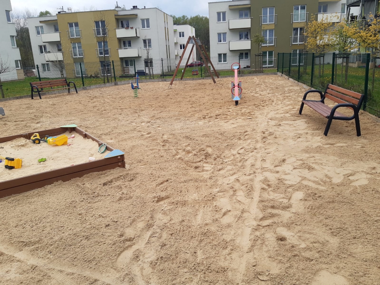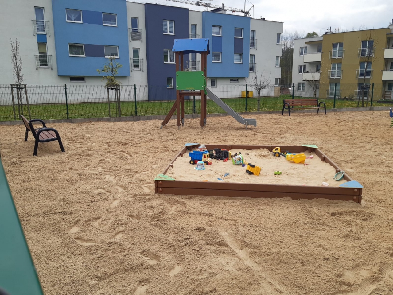Najmłodsi mogą cieszyć się świeżym piaskiem w piaskownicy oraz odpowiednio przygotowanym podłożem do wszelkich zabaw.