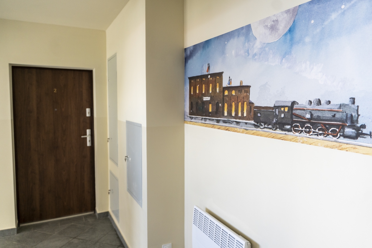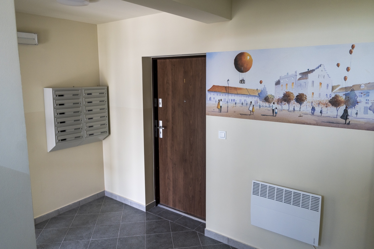 Mieszkania zostały wyposażone w panele w pokojach, płytki w kuchni i łazience, kuchenki oraz podstawowe sanitariaty.