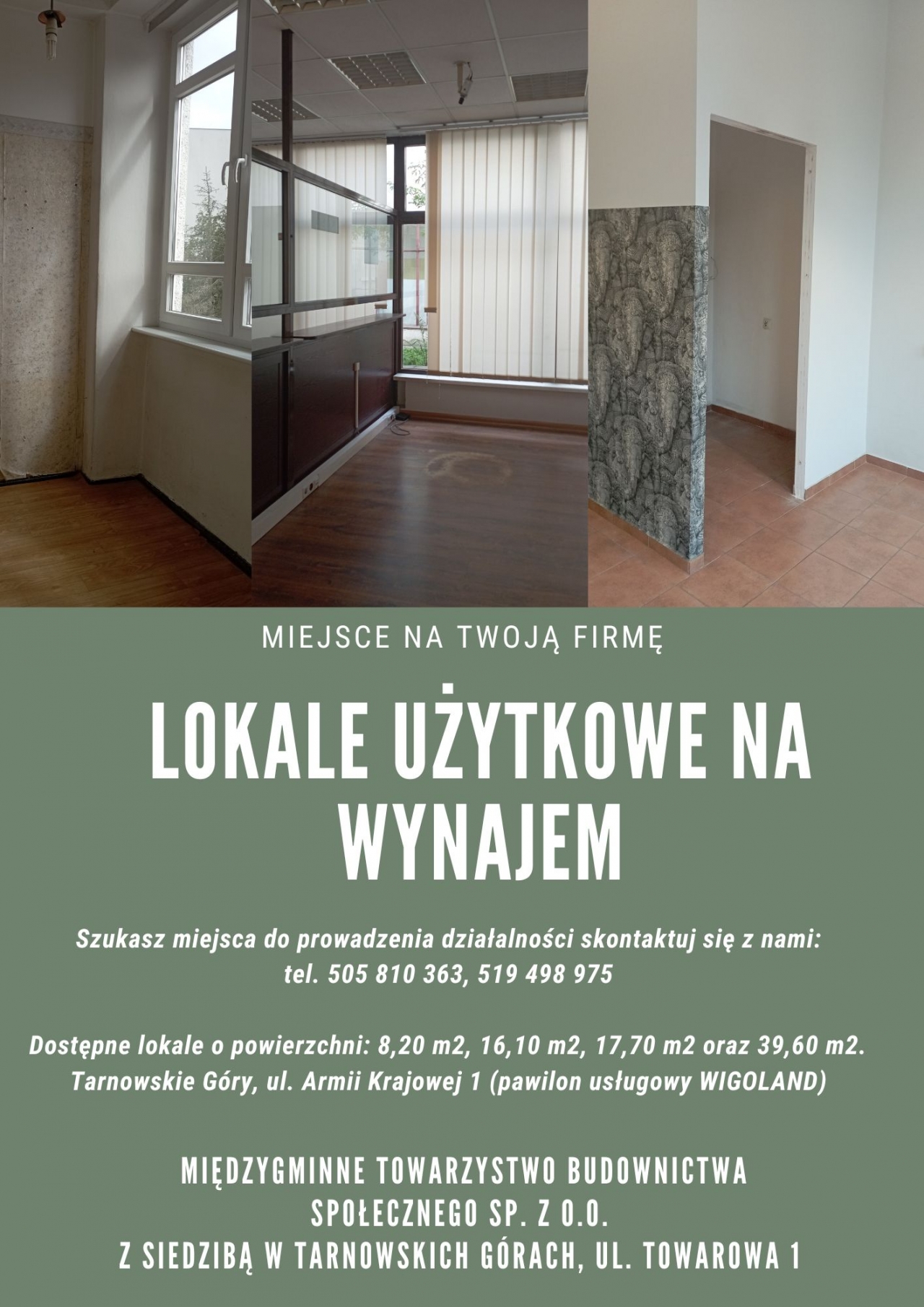 Międzygminne TBS Sp. z o.o. posiada 4 lokale użytkowe na wynajem, więcej informacji znajdą Państwo w załączniku.