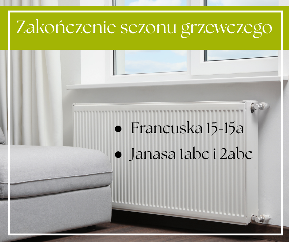 Informujemy, iż z dniem 28.04.2025 r. zakończono sezon grzewczy na poniższych adresach:
