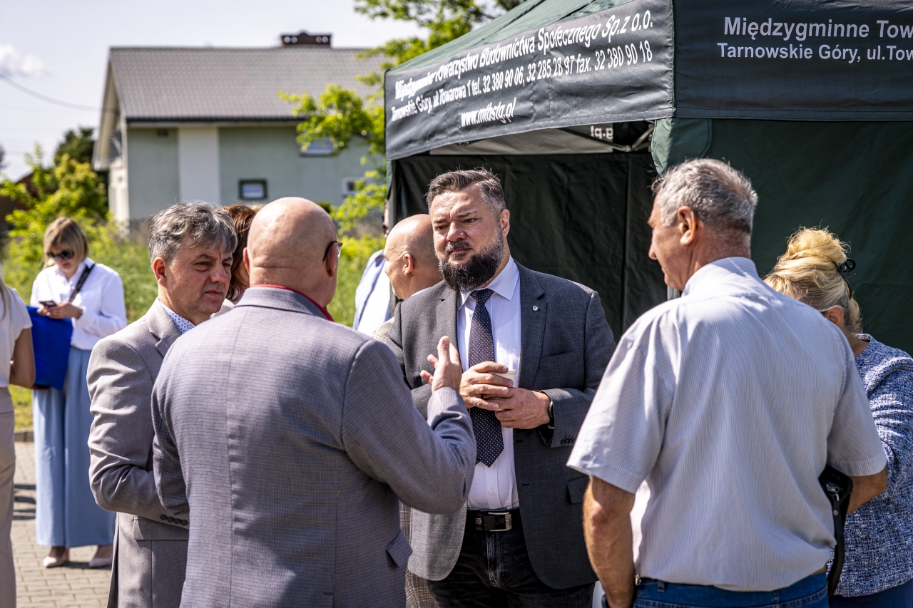 W uroczystości udział wzięli m.in.: Pan Piotr Skrabaczewski – Prezes Międzygminnego Towarzystwa Budownictwa Społecznego Sp. z o.o. w Tarnowskich Górach, Pan Tomasz Respondek – Burmistrz Miasteczka Śląskiego,