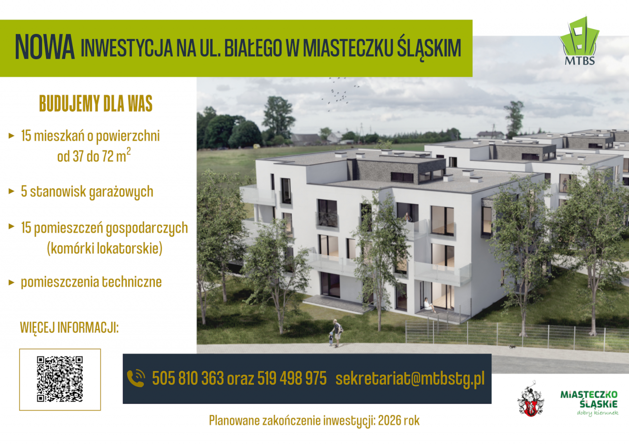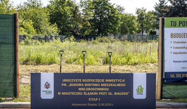 W dniu 12 czerwca 2025 r. miała miejsce uroczystość symbolicznego "wbicia łopaty" na gruncie inwestycyjnym zlokalizowanym w Miasteczku Śląskim przy ul. Białego. Wydarzenie to oficjalnie zainaugurowało rozpoczęcie prac budowlanych na nowej inwestycji mieszkaniowej.