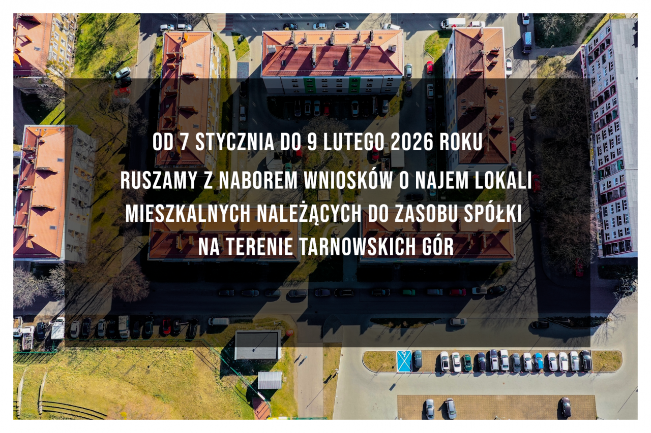 Od 7 stycznia do 9 lutego 2026 roku ruszamy z naborem wniosków o najem lokali mieszkalnych należących do zasobu Spółki na terenie Tarnowskich Gór