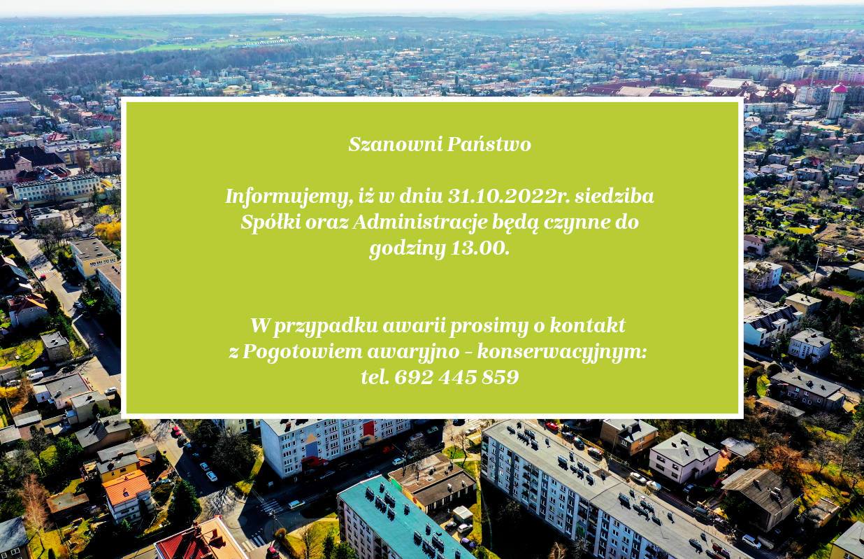 31.10.2022r. - Siedziba Spółki oraz ADM będą czynne do godz. 13.00