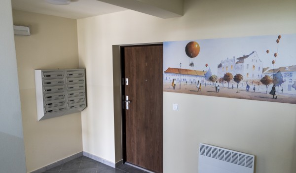 Mieszkania zostały wyposażone w panele w pokojach, płytki w kuchni i łazience, kuchenki oraz podstawowe sanitariaty.