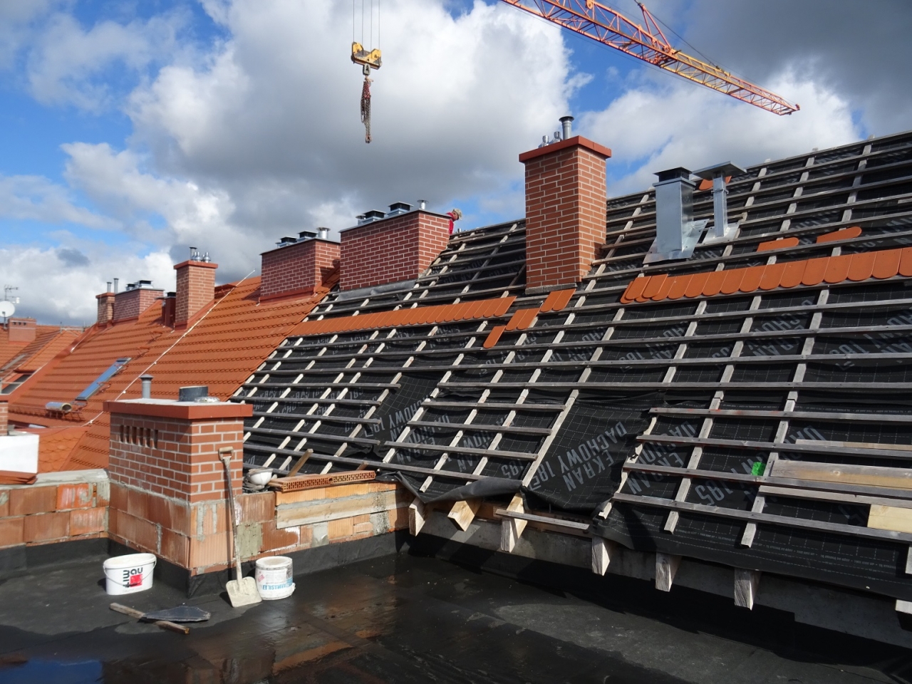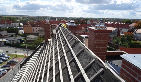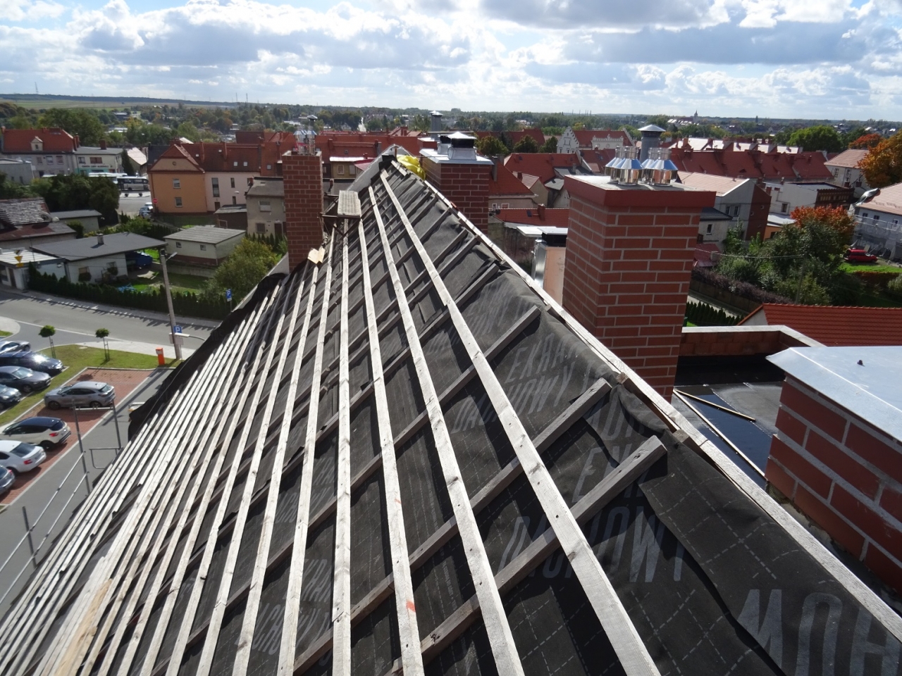 Aktualnie prowadzone są prace związane z układaniem dachu, wykonywaniem tynków oraz posadzek.